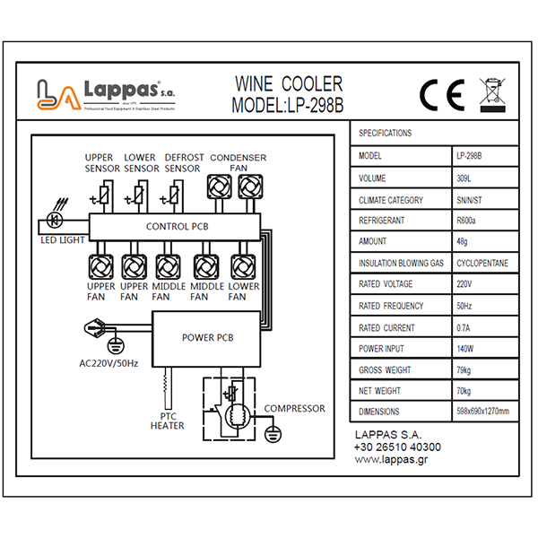 Βιτρίνα Συντήρησης Κρασιών Με Δύο Ζώνες Θερμοκρασίας LP-298B
